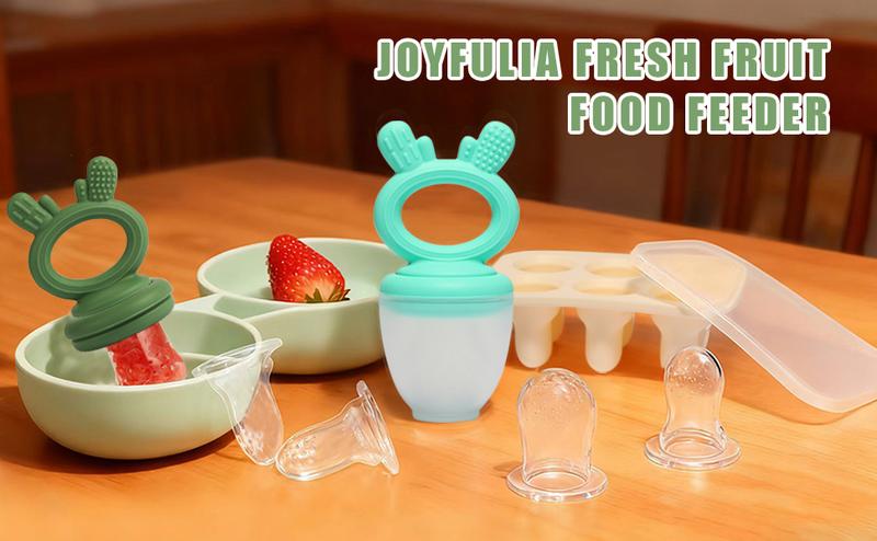 ✨ Perfect for Teething Relief ✨ The Joyfulia Baby Fruit Food Feeder Pacifier 2 Pack includes mini freezer trays. It's ideal for breastmilk popsicle molds, providing teething relief. The BPA-free silicone mesh feeder ensures safe infant self-feeding. Each pack comes with extra 4 food pouches. Perfect for parents seeking a safe and convenient feeding solution.